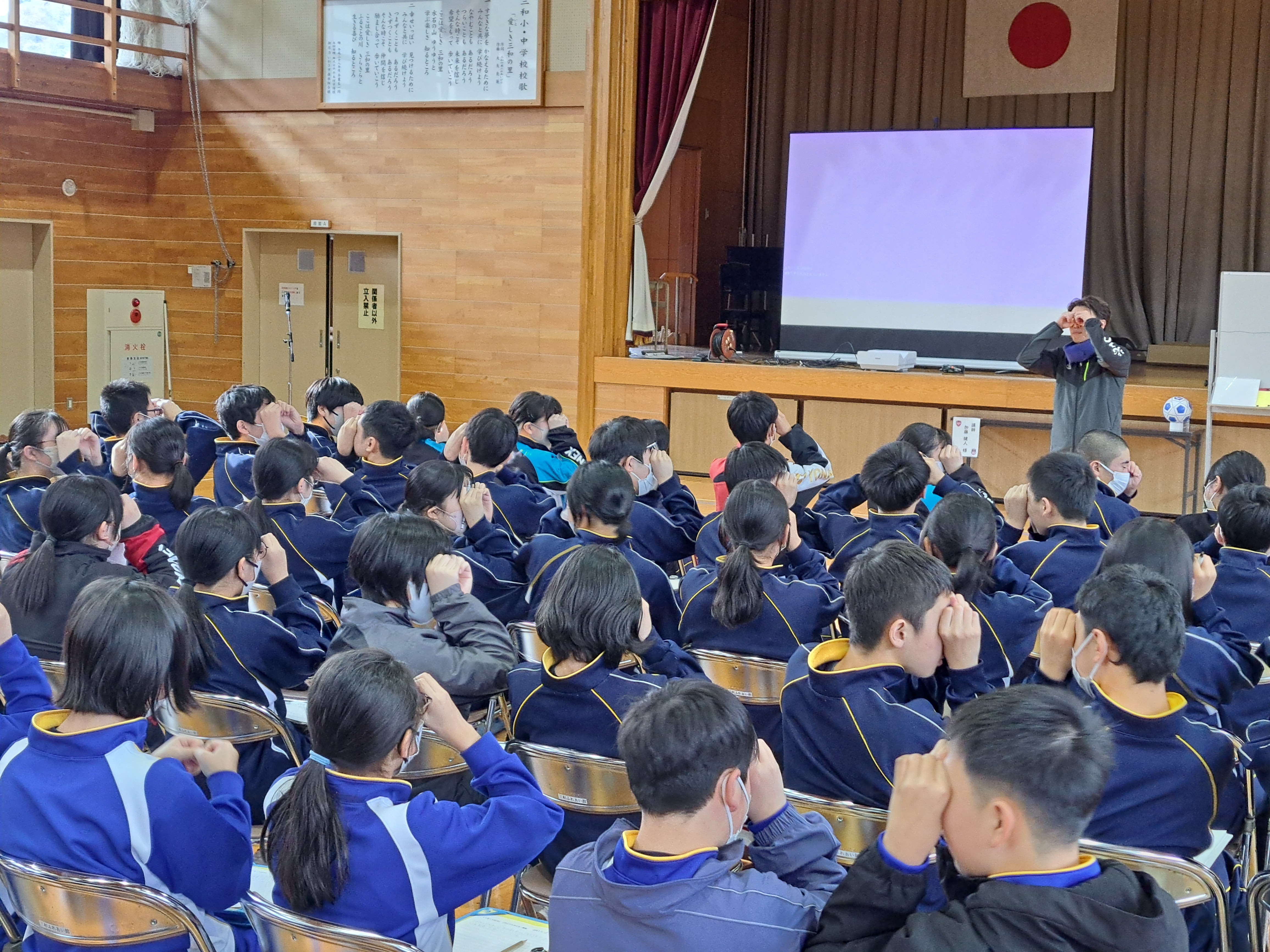 | 参加者 | 三和中全校生徒(47 名)、三和小児童 5・6 年生 21 名、教職員 |