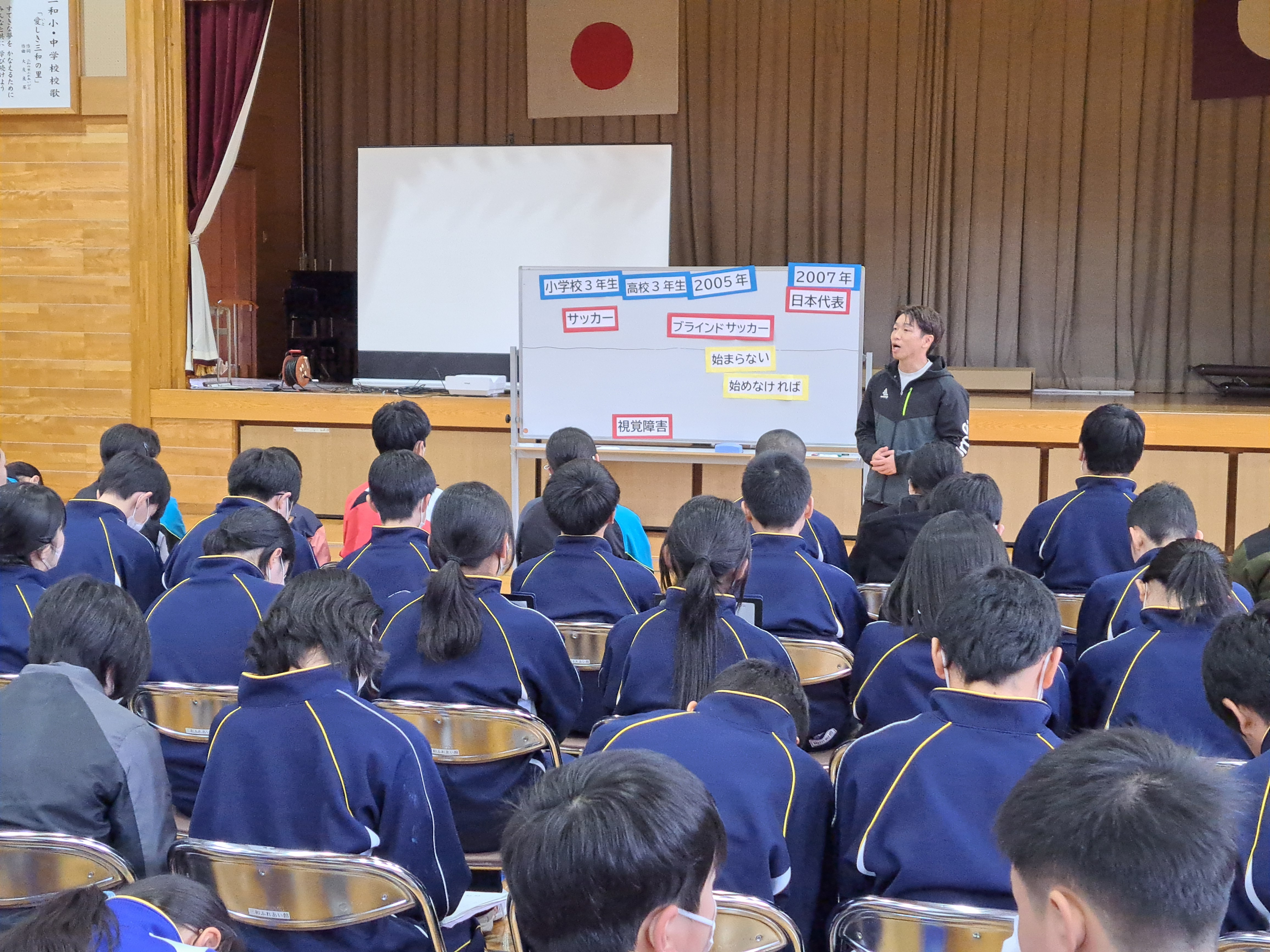 今回の講演会と体験会を通して、生徒・児童の皆さんがブラインドサッカーの魅力だけ