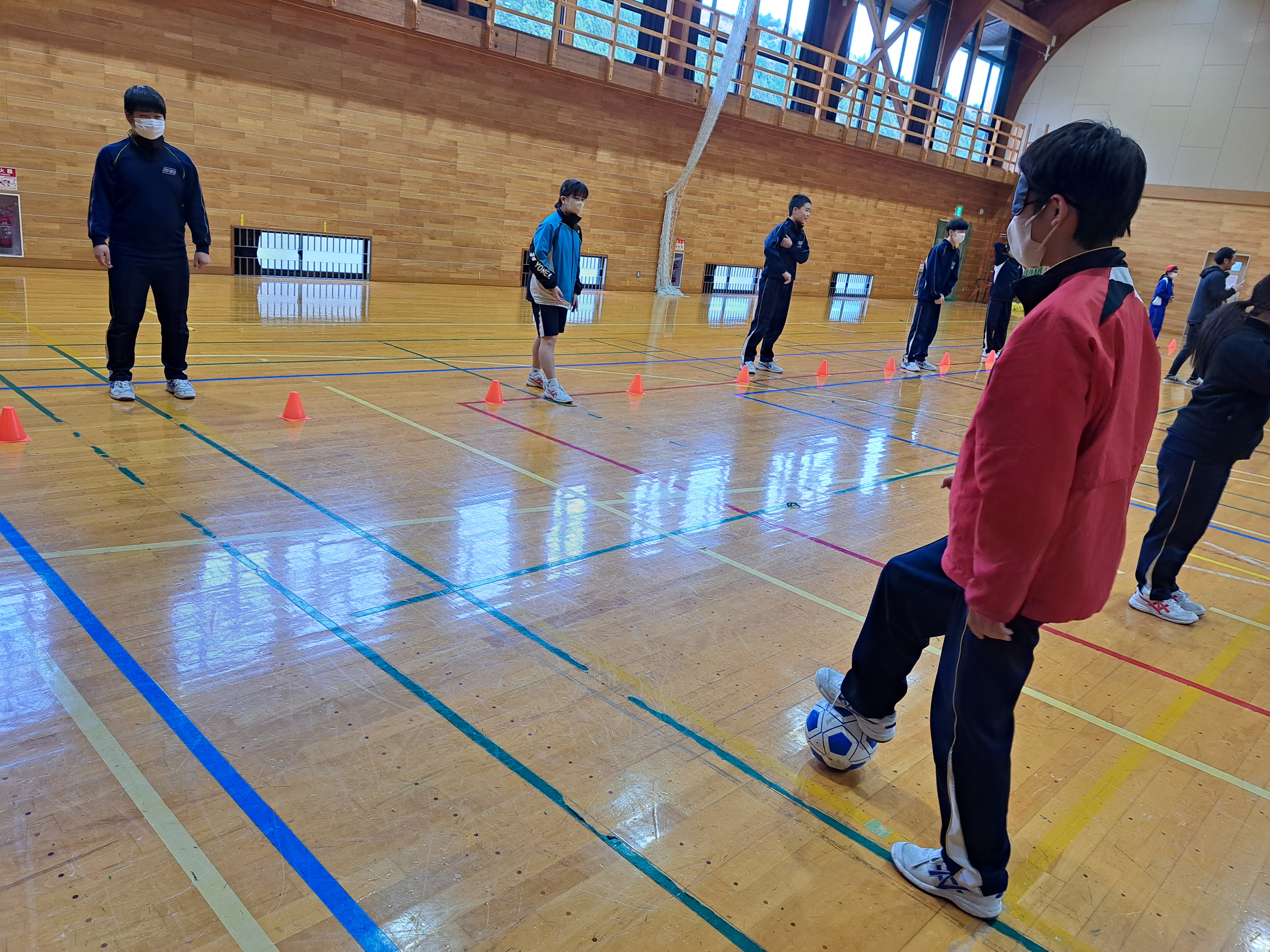 状態でボールを受け取ったり、仲間にパスを出したりする中で、声かけの大切さや仲間